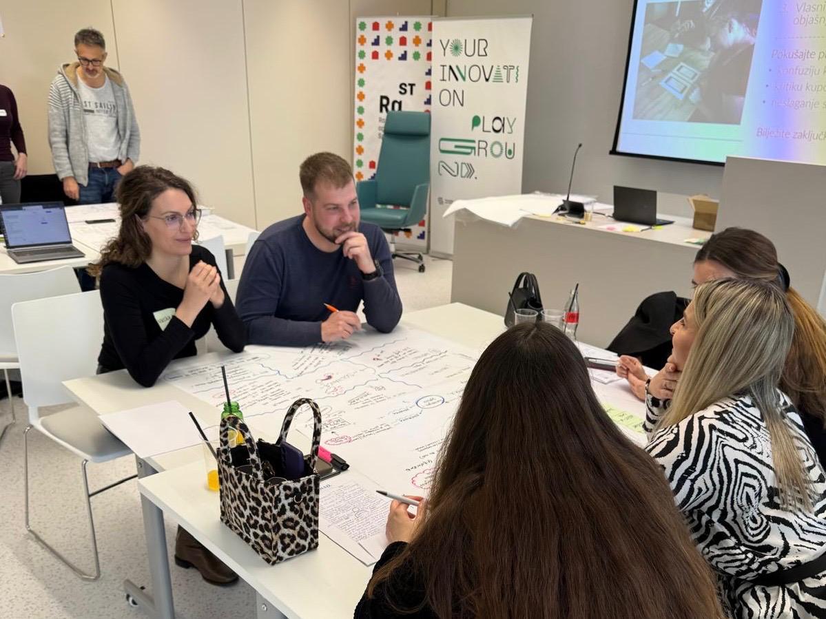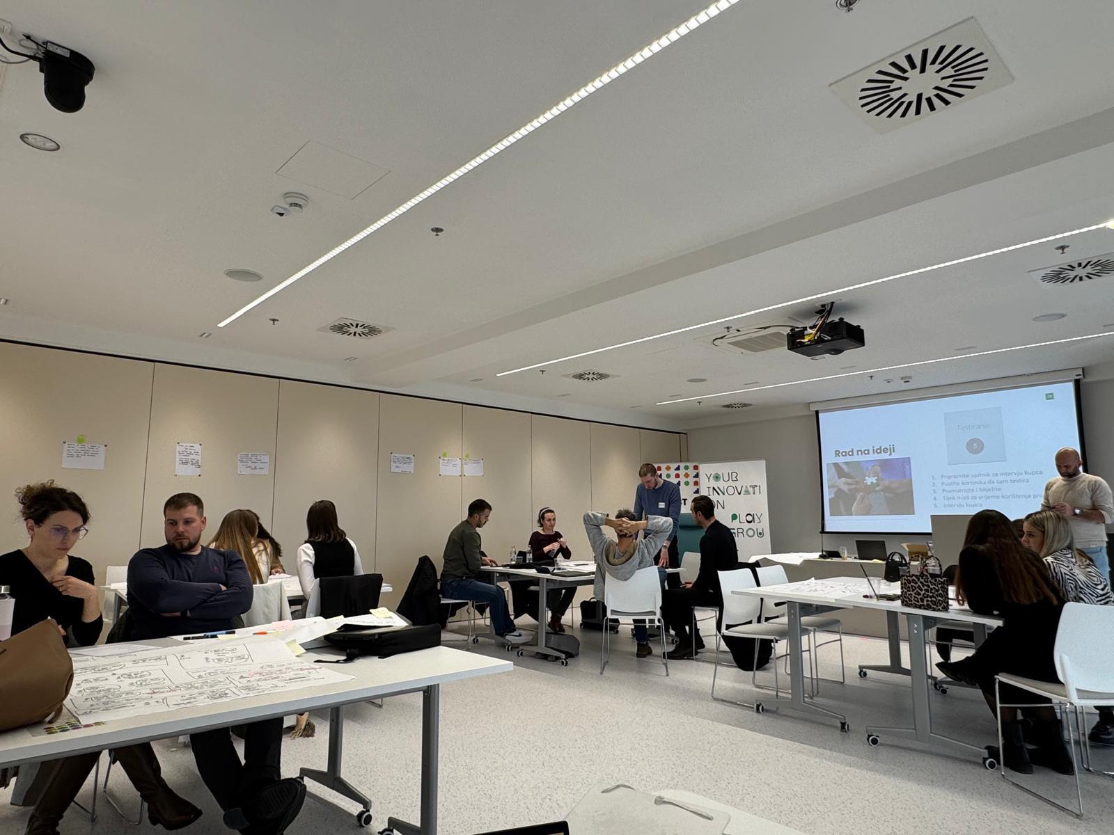 Kroz intenzivan i praktično usmjeren program, sudionici su prošli ključne faze razvoja inovativnog rješenja – od prepoznavanja problema i razumijevanja potreba korisnika do ideacije, izrade prototipa i njegove validacije. Radionica je bila usmjerena na razvoj konkretnih i primjenjivih rješenja, uz testiranje ideja kroz stvarne povratne informacije korisnika, čime su sudionici dobili čvrste temelje za daljnji razvoj svojih projekata.