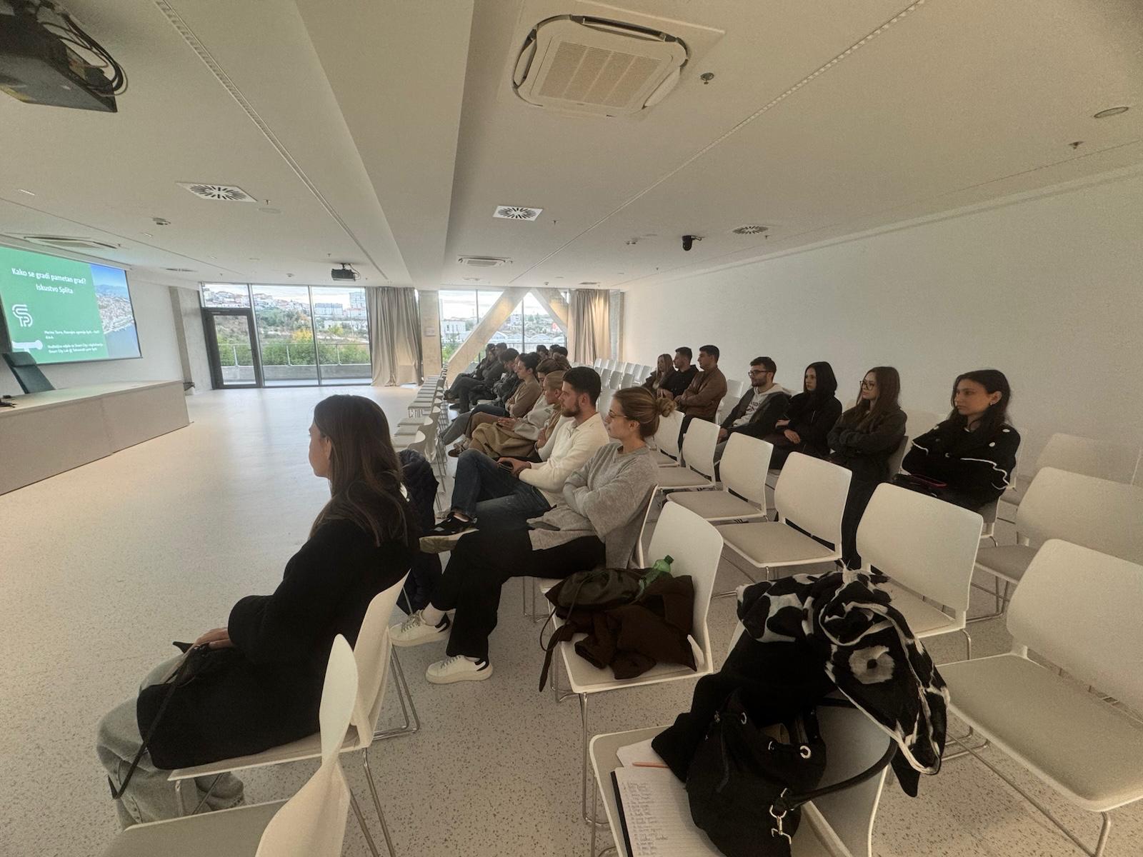 U ponedjeljak, 22. prosinca 2025., u Tehnološkom parku Split održano je gostujuće predavanje za studente 2. godine diplomskog sveučilišnog studija Ekonomskog fakulteta Sveučilišta u Splitu koji pohađaju kolegij Upravljanje pametnim gradovima. Studente je pratila prof. dr. sc. Maja Ćukušić.