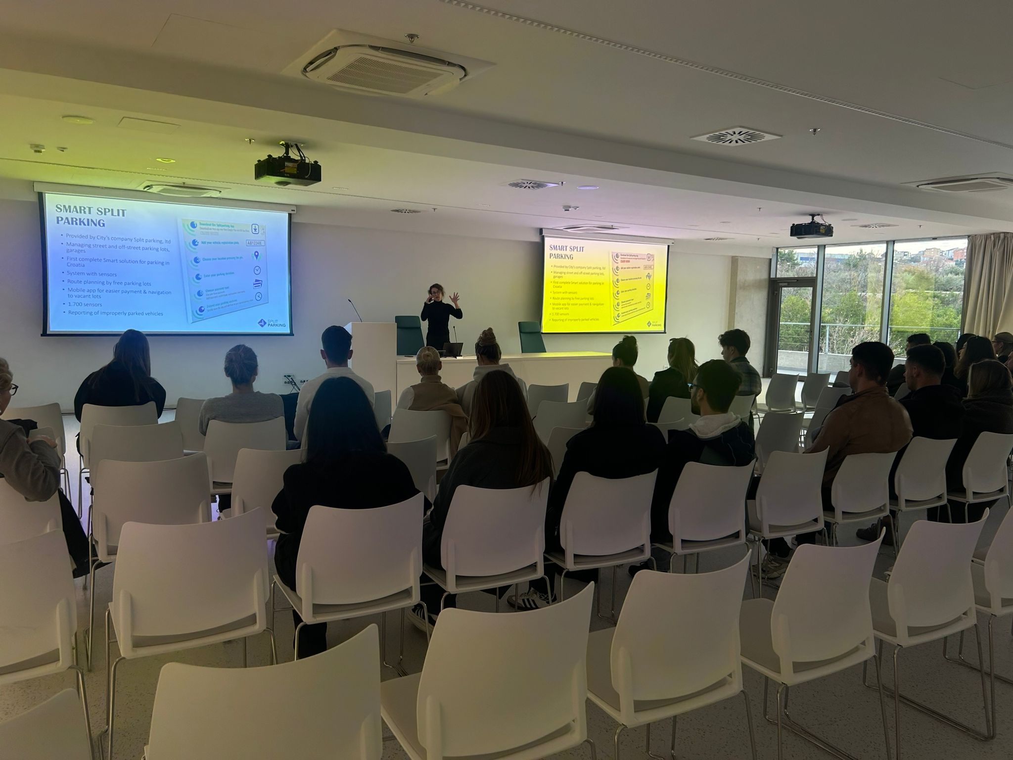 Predavanje je održala Marina Tavra, voditeljica Odjela za Smart City i digitalizaciju Razvojne agencije Split – RaST i voditeljica Smart City Laba. Studenti su kroz predavanje upoznati s ulogom RaST-a i Tehnološkog parka Split u razvoju inovacijskog ekosustava te s ključnim smart city projektima Grada Splita, s naglaskom na održivu mobilnost, digitalne javne usluge, razvoj GIS i 3D modela grada te budući digitalni blizanac Splita.